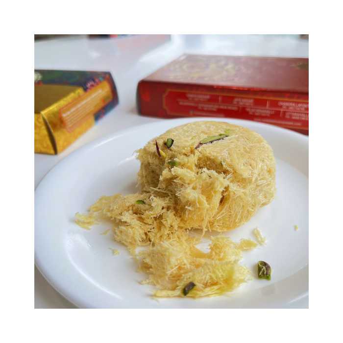 A firmer, cake-style version of Sohan Papdi, layered, light and whispy.